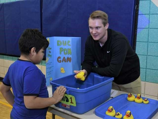 Taking to math like ducks to water in this math fair game.